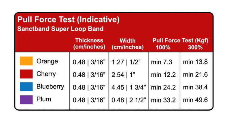 Sanctband Super Loop Bands are made from natural rubber latex material. It is a continuous Loop Band that has a total lay-flat-length of 41 inches.